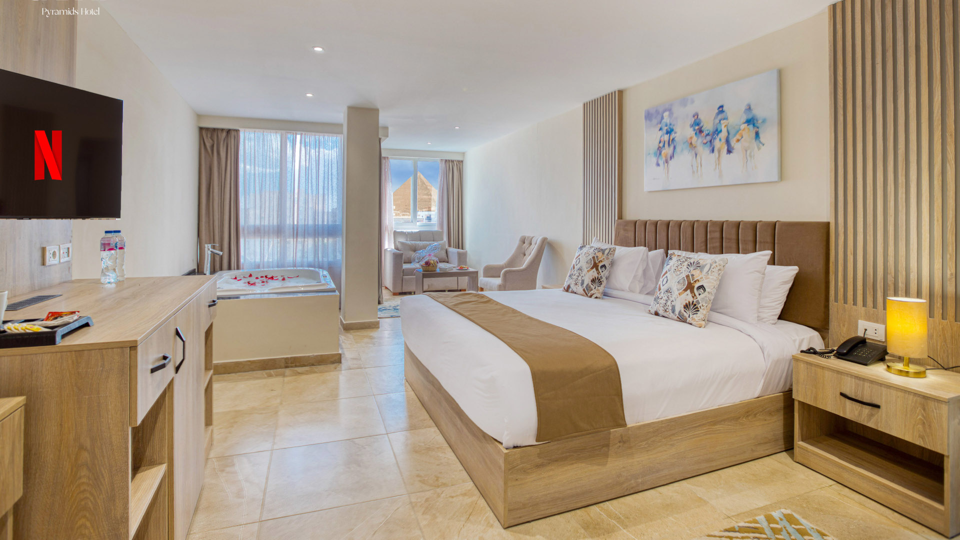 Located in Cairo and with Giza Pyramids reachable within 1.8 km, Saray Pyramids & Museum View Hotel provides concierge services, non-smoking rooms, a shared lounge, free WiFi throughout the property and a terrace. This 4-star hotel offers room service and a 24-hour front desk. Certain rooms at the property include a balcony with a city view. The hotel will provide guests with air-conditioned rooms offering a wardrobe, a kettle, a minibar, a safety deposit box, a flat-screen TV and a private bathroom with a shower. A buffet, continental or Full English/Irish breakfast is available daily at the property. At Saray Pyramids & Museum View Hotel you will find a restaurant serving Mediterranean, Middle Eastern and international cuisine. Vegetarian and halal options can also be requested. Great Sphinx is 3.2 km from the accommodation, while Cairo Tower is 15 km away. The nearest airport is Sphinx International, 31 km from Saray Pyramids & Museum View Hotel, and the property offers a paid airport shuttle service.